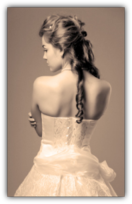 Starting at $1025.00*, our basic package includes hairstyling and makeup application for a party of four, including bride, at the location of choice. *Includes trial run of hair and makeup for the bride (with headpiece).
